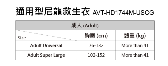- 通過美國海岸防衛隊認證標準(USCG)之第三類助浮裝置