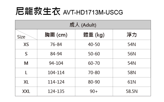 - 通過美國海岸防衛隊認證標準(USCG)之第三類助浮裝置